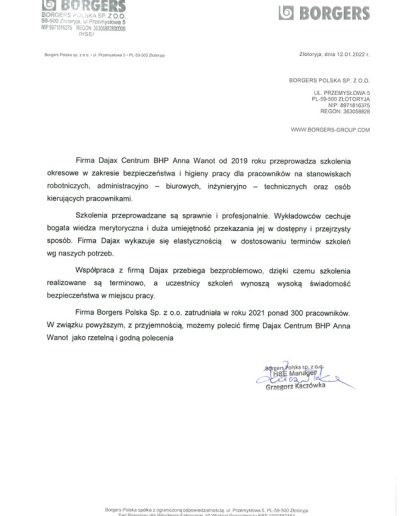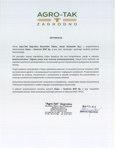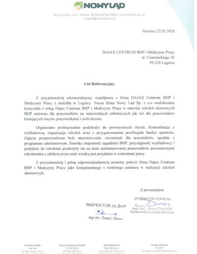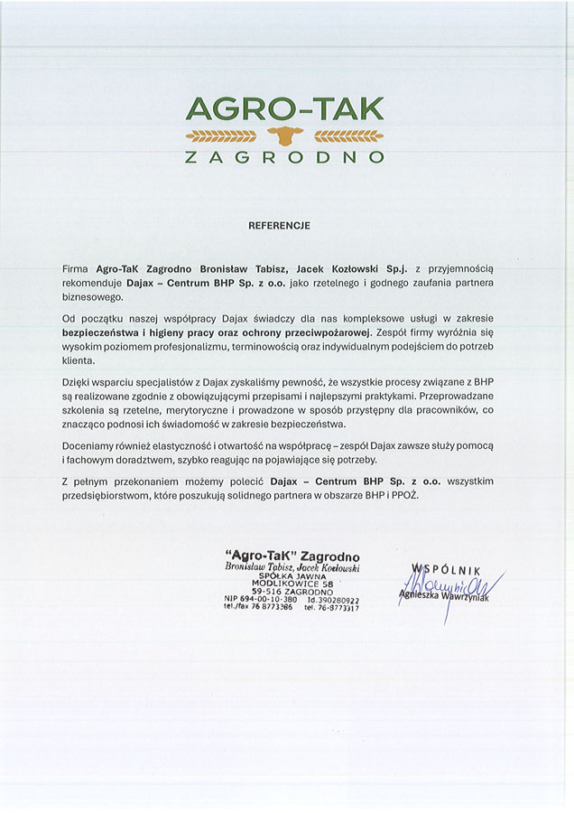 w zakresie BHP, PPOŻ.,OCHRONY ŚRODOWISKA oraz MEDYCYNY PRACY.