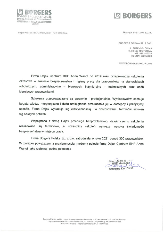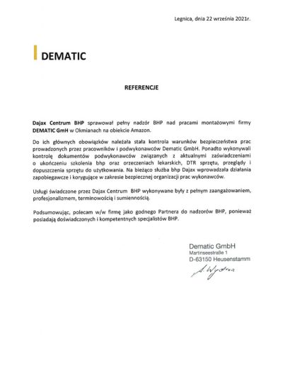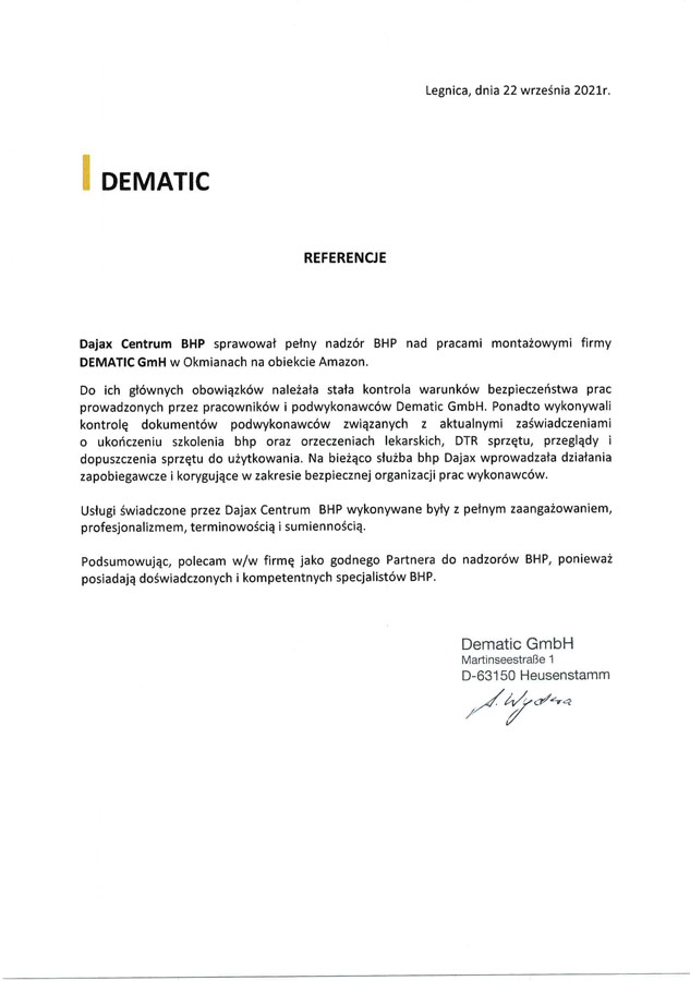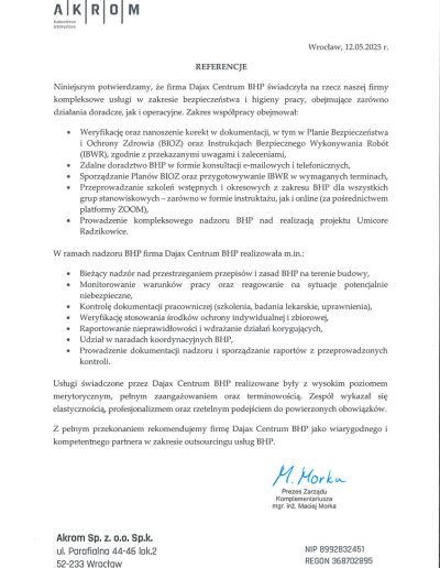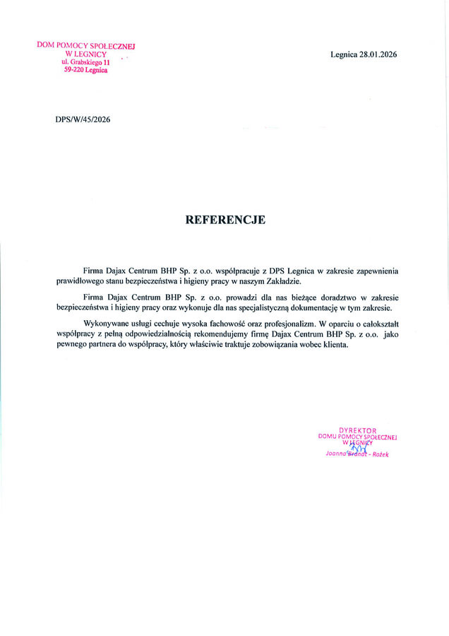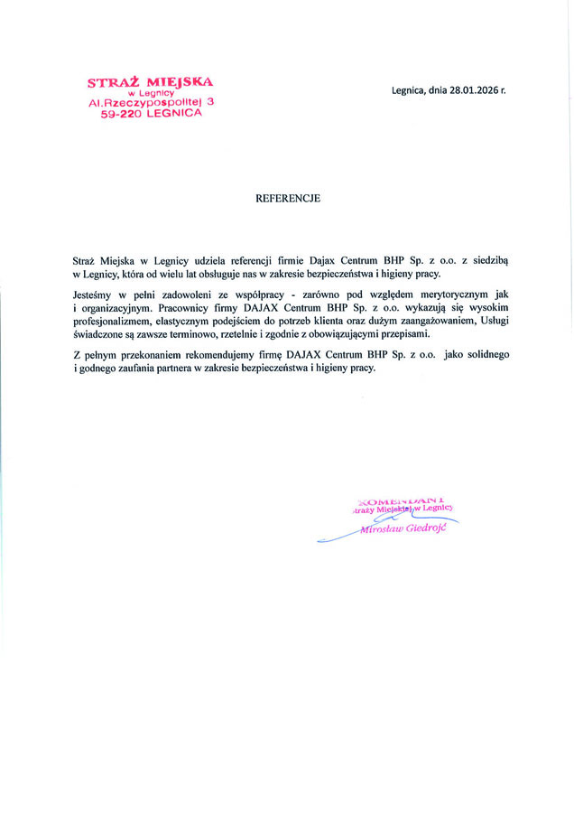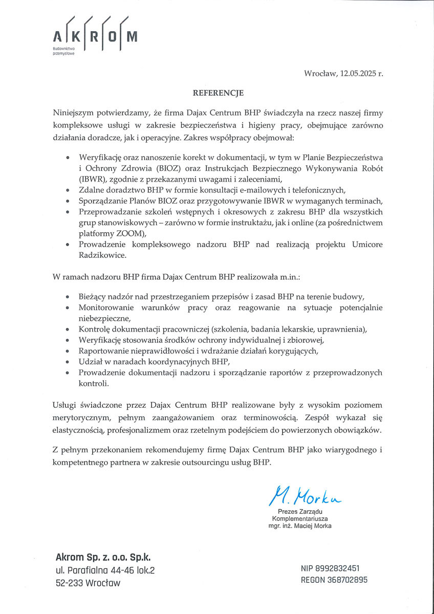 DAJAX Centrum BHP od 1990 roku wspiera firmy w całej Polsce, oferując kompleksowe usługi z zakresu BHP, PPOŻ., ochrony środowiska oraz medycyny pracy. Doświadczenie, sprawdzone procedury i wykwalifikowany zespół to gwarancja zgodności z przepisami i realnego wsparcia na co dzień.